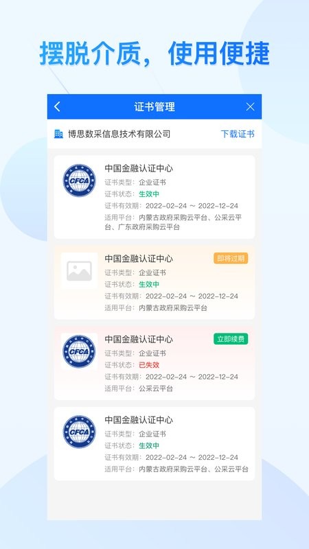 -- 汇集了超多的项目信息,方便用户们及时查看,对证书的管理也变得更为便捷