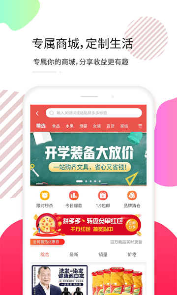 最让我觉得方便的是每天都有大量的新款商品上架,而且价格都很白菜,很多都是9.9包邮甚至1块钱就能买!尤其是像大额优惠券这种功能,直接帮你砍价不少。还有返利活动,完成订单还能拿返现,最高返利能达到80%,这也太划算了吧!