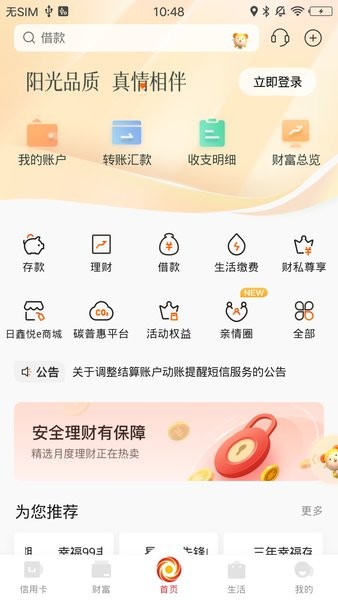 5.资金安全时刻守护,全面整合“安全中心”,新增“亲情圈”功能,智能风控实时保护 账户安全。