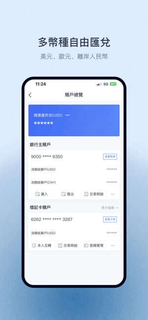 用户可自由换取美元、欧元、离岸人民币,全球资产投资管理无压力,一个账户搞定全球投资。