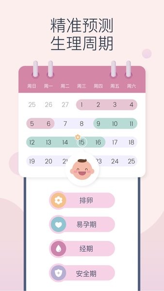 1.智能预测周期:通过采集基础体温、月经周期、每日记录,应用大数据分析和机器学习算法,棒米可以精确预测你的排卵周期。日历形式直观易懂,每日记录简洁方便。