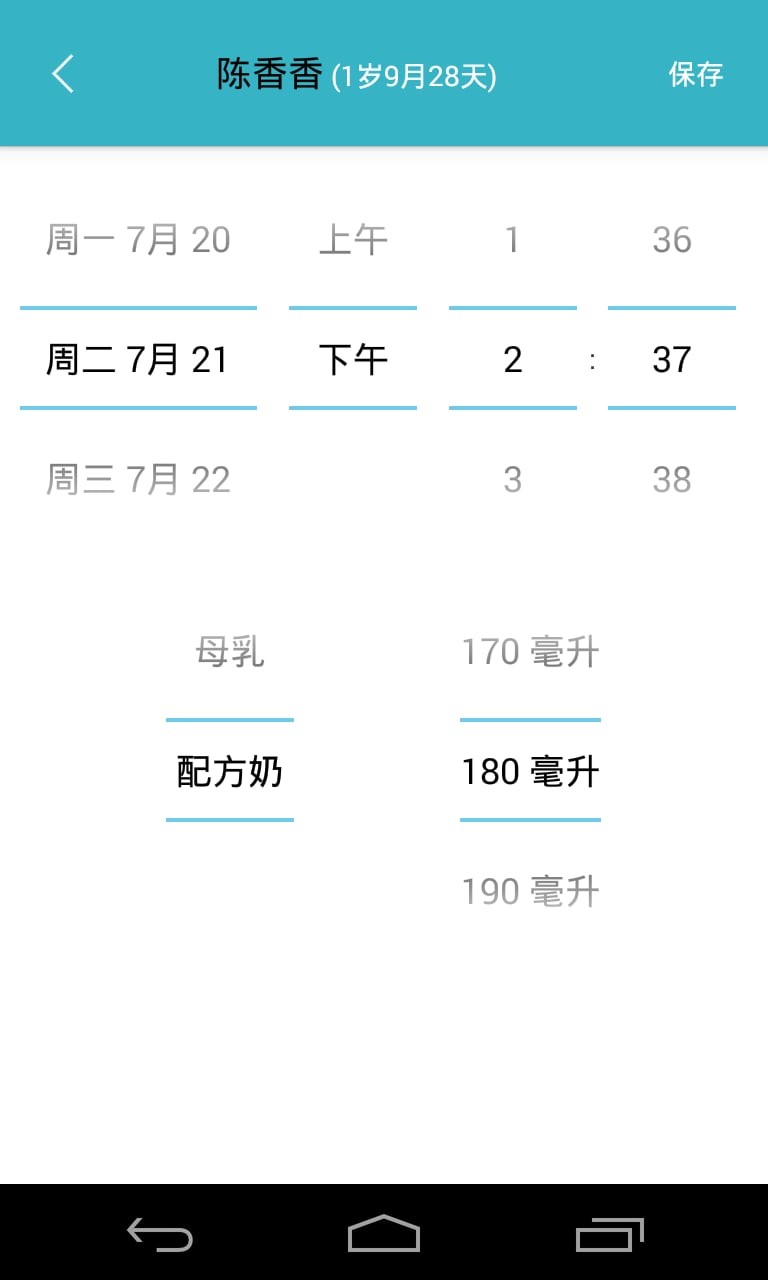 改进:针对“奶量”功能,提供精细记录选项,可精确至“1ml”。