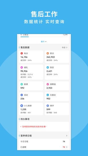 掌馨,提供更加智能化的数字化办公新方式,软件可以帮助企业更高效率的开展人事、用户等管理工作,随时了解自己的销售报表信息,产看产品的回访记录,对营销结果进行统计分析,有需要的用户可以下载使用!