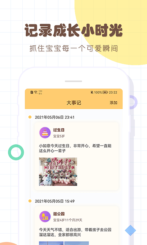 ★大事记,关注宝宝成长中的点滴事,记录宝宝每一个美好瞬间。
