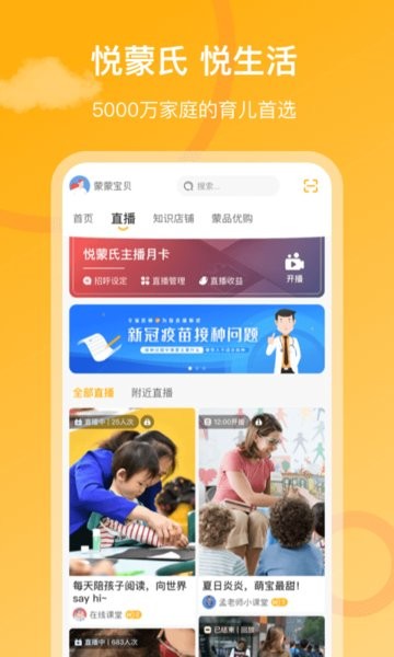 悦蒙氏育儿直播是专为家长打造的育儿知识教育平台,让家长可以在软件之中学习更多丰富的育儿知识,让孩子可以获得最科学的教育和最正确的成长引导。