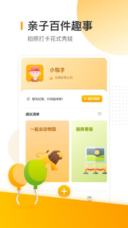 3、轻松记录亲子趣事,还可以进行拍照打卡,花式秀娃,全面展示宝宝;