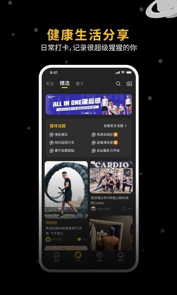 记录运动生活,分享你的热爱。在猩球社区你可以通过文字、图片、短视频、等方式记录健身运动训练轨迹,分享运动生活日常、运动穿搭秘籍、健身训练心得、健康的生活方式……