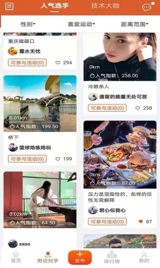 1、随时随地找到心仪的运动对手、运动伙伴;