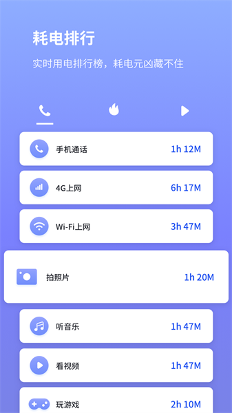 1、电池优化:耗电应用排行榜,帮助您实时了解主要耗电应用,及时查杀释放内存,深度省电,再也不用担心电量用的过快啦。