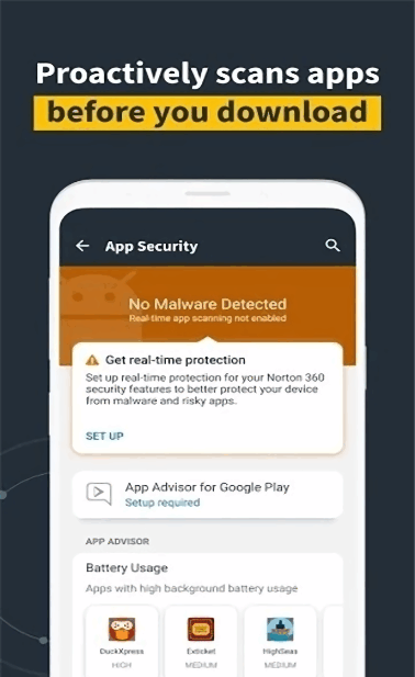 Norton 360安卓版是诺顿旗下的安全杀毒防护工具,可以实时防护,监控提醒,一键快速扫描识别,全天候守护系统安全,防止恶意软件的威胁,保护上网的安全,免于导航到欺诈性(仿冒网站)和恶意网站,智能诊断修复,好用又实用!