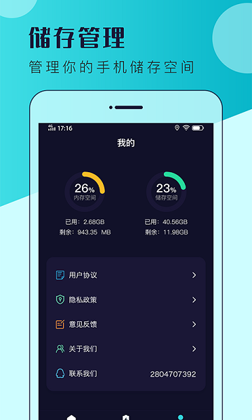 2.为用户提供更加方便的手机存储管理功能,各类软件占用等信息轻松了解。