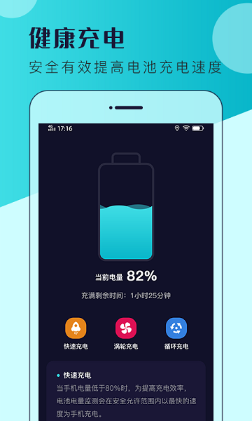 三种充电模式,快速充电,旋涡充电,循环充电,安全有效加快电池充电速度,有效防止手机电池充电时间过长,导致电池寿命缩短的现象。