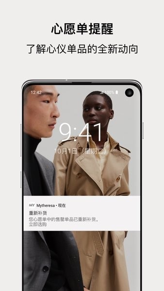 当您的钟爱单品享受优惠活动、只剩一件或重新补货时收到通知提醒;