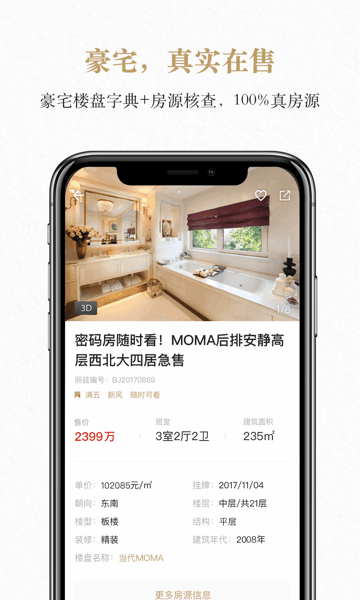 丽兹行豪宅是一个专门提供高端房产交易服务的平台,涵盖二手房、新房、租房等多种类型,每天都有特价好盘上线,还有0佣金的限时抢购活动。他们不仅代理北京和上海的高端楼盘,还涉及海外房产如纽约、波士顿等地。通过他们的app,用户可以轻松找到心仪的豪宅,支持按区域、价格、户型等多维度筛选,还能查看3D全景看房,让选房更直观。