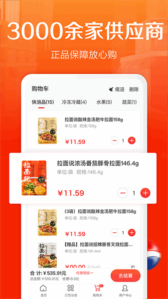 惠配通最新版本是一款全新的在线订货软件,专为社区超市经营管理者设计。它内置了丰富的商品种类,用户可以直接在手机端下单,还有专门的工作人员提供配送服务,送货速度快,满足日常需求。