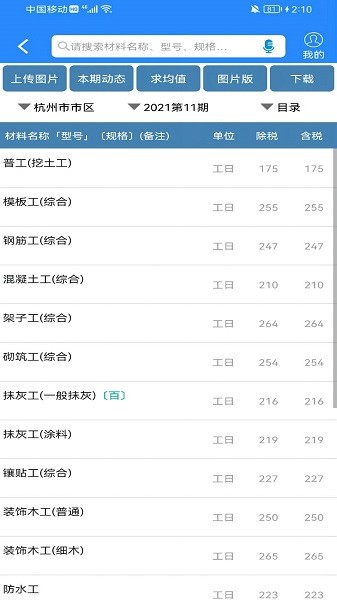 3、共享功能:行行造价为建筑行业基础数据免费共享平台,用户可以共享信息价等行业数据,其他用户免费浏览。