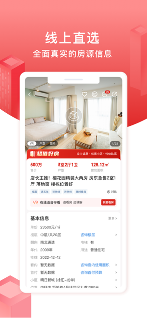 VR全景看房,720度全方位,身临其境全面了解房源真实信息;