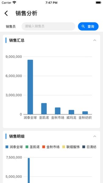 芒果办公软件最新版能够在手机上进行便捷的协同办公服务,支持进行出入库查询,可以查看详细的单表格,有贴心的销售数据以及原料出库分析,支持在线审批报价单、销售单等各种单据,尤其适合纺织行业的用户来使用。
