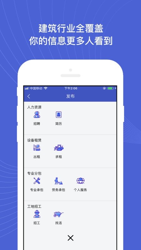 各个项目需要找人施工的话则可以在此发布项目而寻找合适的劳务工人
