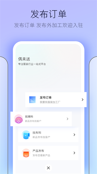偶来送APP,一款专门为服装行业打造的办公辅助软件,依托强大的技术为用户打造了智能便捷的办公平台,集采购、订单处理、库存管理等多项服务为一体,让你直接在手机端就能在线办公,从而不断提高相关人员的工作效率,实用性极强,有需要的朋友快来下载用起来吧~