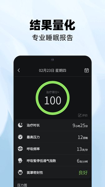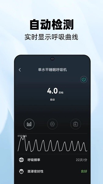 显示呼吸压力值、呼吸频率、面罩密封性等实时数据,为用户提供可视化帮助。