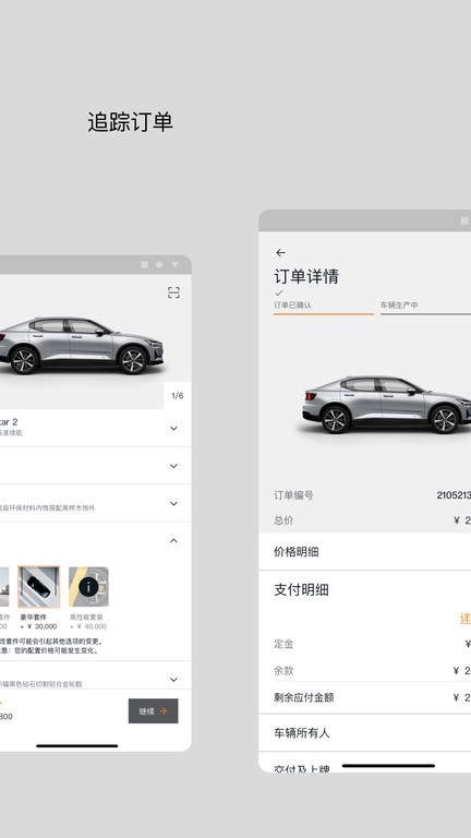 polestar极星app是由极星汽车推出的手机客户端,可以查看最新的产品资讯动态,支持在线订车,车辆的外观、内饰、车轮、套件等均可自由选择,选择完毕以后会出现相对应的价格,支持在线付款购车,订单实时可查。