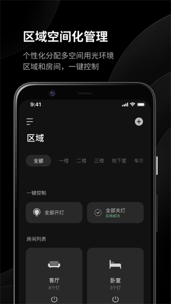 支持区域、房间、灯组操作,操控更便捷。