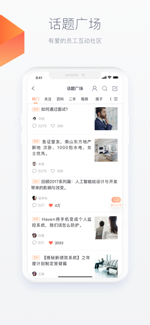 5、话题广场是我们精心打造的一个员工互动社区。在这里,您可以与同事们分享工作心得、生活趣事、行业动态等丰富内容。我们鼓励开放、包容的交流氛围,让每一位员工都能感受到来自团队的温暖与关怀。同时,我们还会定期举办各类线上活动,如知识竞赛、才艺展示等,让您的职场生活更加丰富多彩。