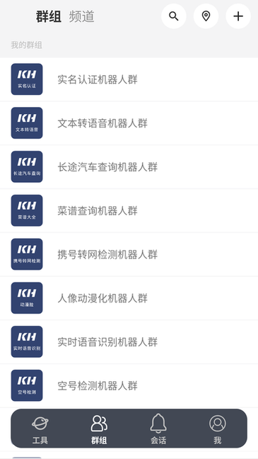 客汇宝建立了一个AI机器人市场,市场中有各种各样的机器人,用来赋予我们“超人”的能力。比如,语音转写、OCR文字识别、图片处理、实名认证等等。 机器人的使用也非常简单,新建立的群需要绑定你需要的AI机器人,点击输入框上方的“AI智能机器人”进行绑定!