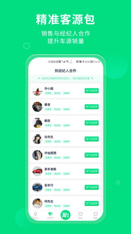 客源获取,助力各种汽车经纪人快捷的获取买车的客户资源轻松与客户沟通。