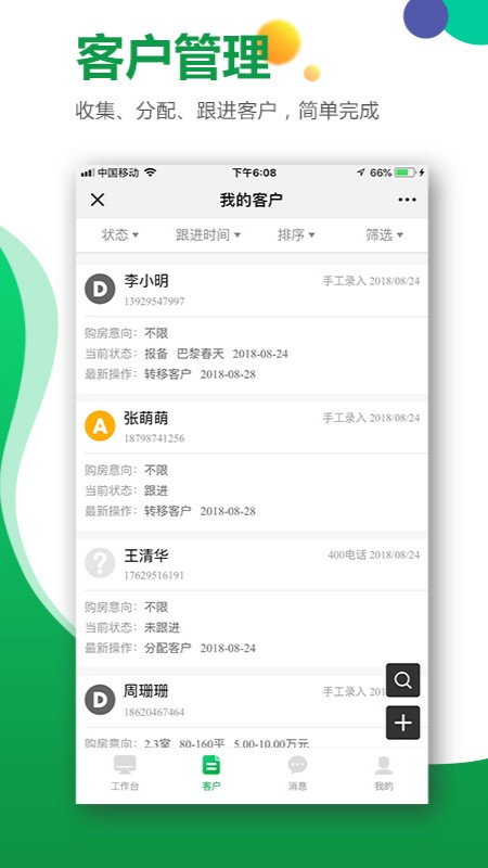 所有的客户信息全部展示在平台里,用户可以快速的进行使用;