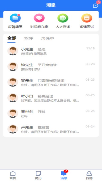 门窗直聘网app含有超多门窗相关的岗位信息,包括搬运、打胶、安装、维修等,能够按照工种、区域和待遇来进行筛选,能够在线制作自己的简历,企业用户可以在线认证,发布岗位招聘信息,进行推广等。