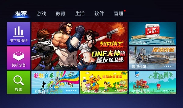 创维应用商店可以安卓到安卓智能TV,安卓电视盒子等设备上,让您家中的电视拥有免费的影视剧资源,在线点播高清播放,集电影、连续剧、综艺、动漫、直播以及纪录片等内容为一体。