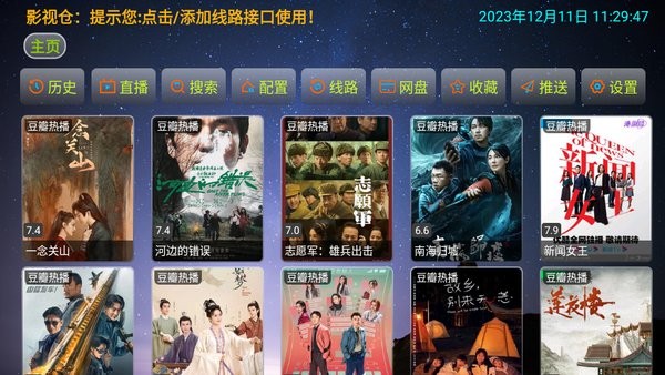 3.回到首页,正在导入接口,等待一会,成功后,就可以搜索想看的资源了,比如志愿军:雄兵出击。