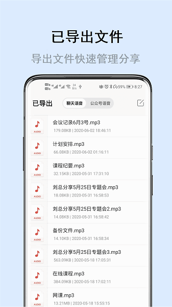 畅享微课这款应用支持多个微信语音的整理,每个账号的语音都会自动获取,不需要来回切换就能找到需要的语音留言