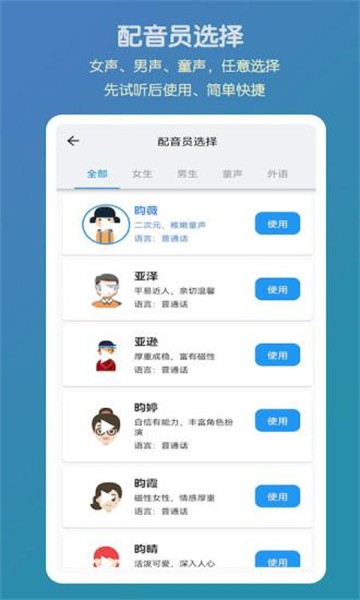 悟空修音是一款支持智能配音和趣味变声的语音合成软件,适合短视频创作、卖场配音、有声读物制作等场景。智能配音采用语音合成技术,拥有多个主播,支持普通话、英语、日语多种语种。趣味变声支持萝莉、大叔、空灵、合唱团等多种音效,简单便捷。支持一键导出分享。