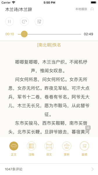 3、详情查看:详情页内容详尽,支持同步查看注解,译文和赏析有爱