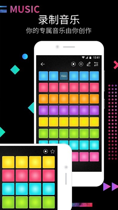 每个打击垫都是一个音轨,不断点击制作电音旋律,一键录制,保存并分享;