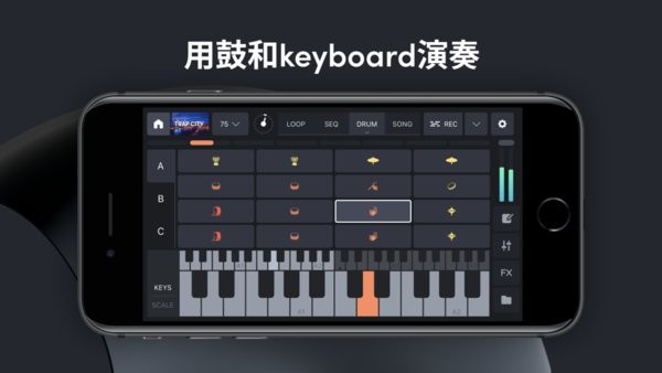 手指鼓实时使用打击乐器和笔记样本,在现有的“循环”网格旁边还有一个额外的“鼓”网格。用新的一组原始循环记录模式。有了一个超级模式和一个额外的网格,你可以填充记录的模式,唯一的边界是想象力。