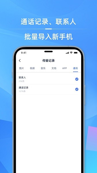 2、支持一般的资料传送,如通讯录,文字讯息,相册,音乐,也可以传送更多种类的资料,如应用程式,设定,历史资料等;