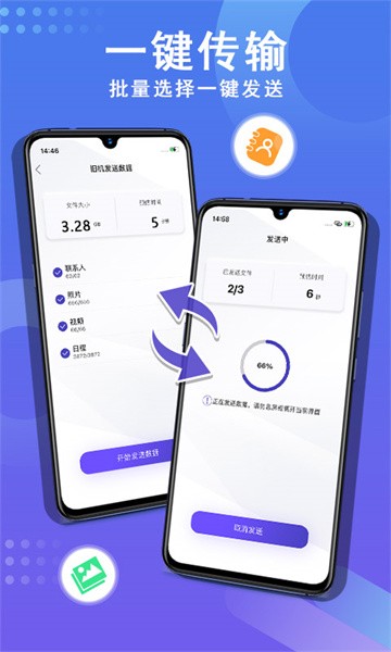 手机数据克隆app能够帮助用户们快速的进行换机,将旧手机上的各种数据便捷的进行克隆传输到新机中,快速的传输方式能够让用户们省下不少的时间,让自己能够快速的使用自己的新手机,超级的好用。