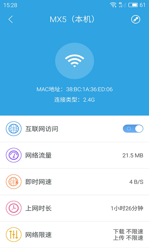 2、通过远程可查看当前接入网络的设备情况。通过魅族路由器的远程功能,用户可控制家中所有接入网络设备的上网时间和网速限定,如管理孩子的上网时长,看看孩子有没有偷偷上网等等。依据每个用户不同的上网习惯,还可以在固定的时间开启或关闭魅族路由器,在节约能耗的同时,经常开关路由设备也能保证网络的畅通。