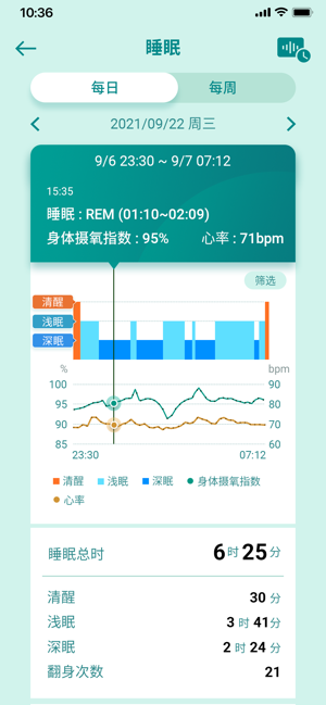 -- 测量并分析您的心率、睡眠时间及翻身动作,以深入了解您的睡眠质量。