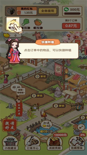 经营农场,开心种菜,玩家在游戏中根据订单需求种植蔬菜水果;
