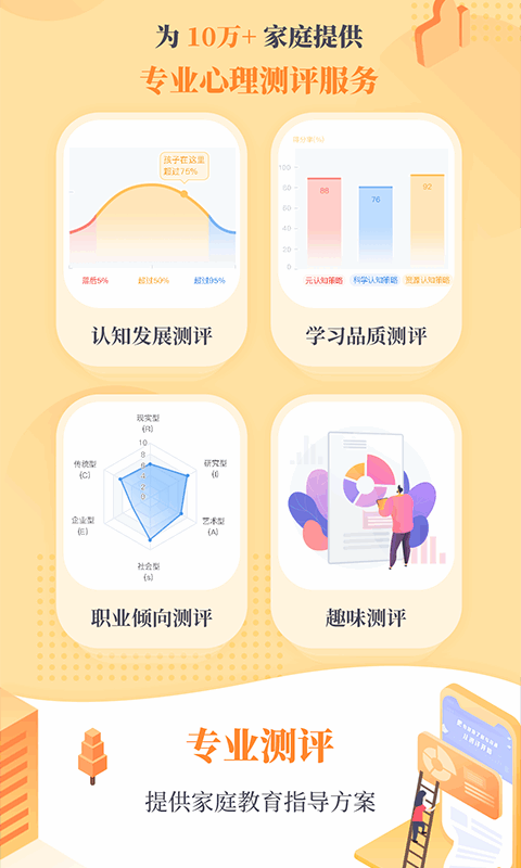 app里有针对6-18岁孩子的各种教育资源,涵盖沟通、情商培养、素质教育等方面,还能测试孩子的认知发展和职业倾向,给出专属的教育方案。功能也很贴心,比如搜索课程、参与讨论、阅读文章、收听音频,还有自评功能,方便家长随时学习和了解孩子的情况。