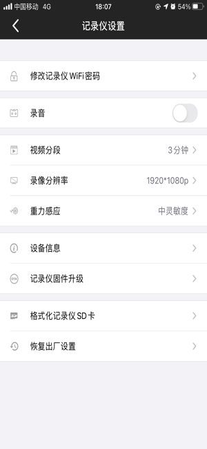 可以通过该APP 对行车记录仪里的各种设置选项进行操控,以实现相应的功能。