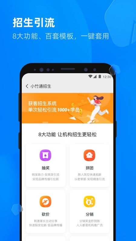 学校专属线上商城,报名选座、分层入班,自动优惠、数据互通
