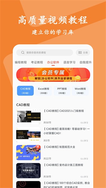 应用提供各行业的视频教学课程,有超10000+免费学习视频课程、完整规划好的学习路径,包含:计算机编程,外语语言学习,考证相关的教学也包括健康生活的教学视频与其他视频资源。在这里,每一个有意愿提升自己的人都可以免费获得优质的高等教育。