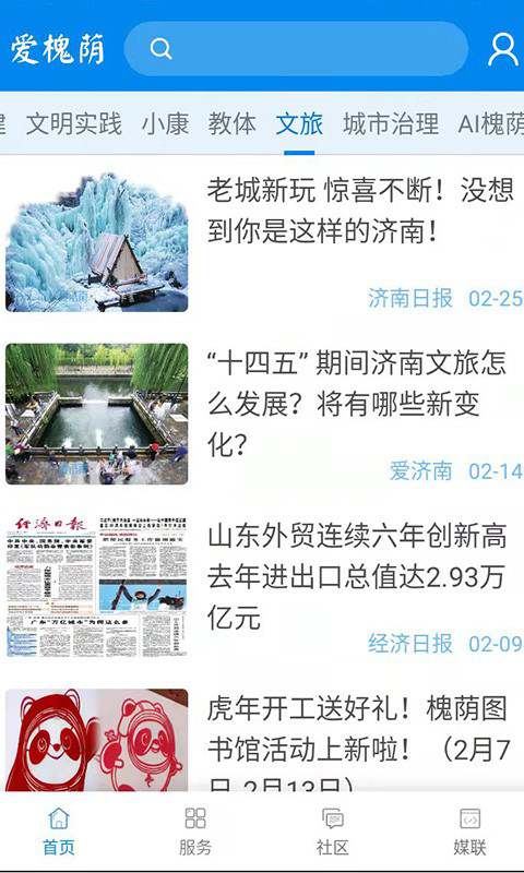 爱槐荫app客户端最新版可以看本地的新闻资讯,足不出户了解每天发生的新鲜事,同时还提供政务和生活服务,轻松缴纳水电燃气和暖气费,同时可以在线查询空气质量和图书馆,可以在社区晒美食、养生、萌娃等!