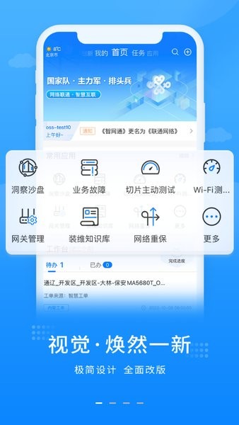 ,对于网络运维人员而言,每天最多的操作就是处理工单。以前要打开多个APP去处理不同类型的工单,现在通过一个联通网络APP,在首页工作台就可以轻松查看和处理工单。